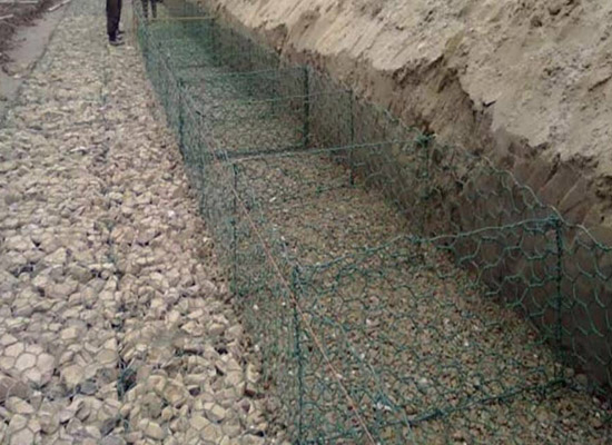 2.锌合金石笼网PVC锌- 5%铝-混合稀土合金钢丝:5%铝-锌合金钢丝混合稀土的表面涂装PVC保护层,然后编织入六角形的电线。这层PVC封面将会大大增加保护环境污染高,并通过不同颜色的选择,使其能与周围环境融合。